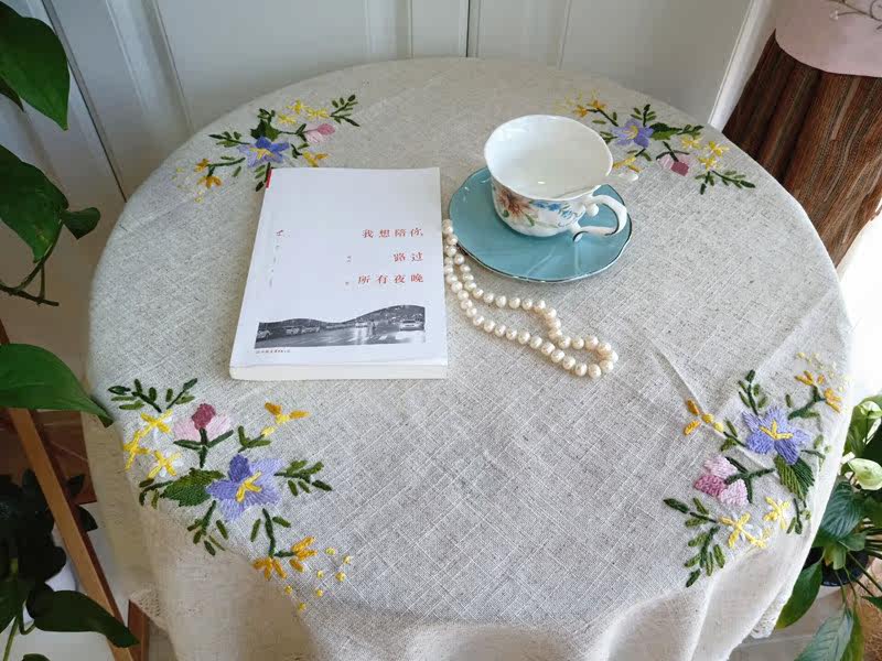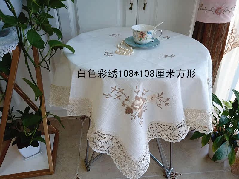 Foreign trade new handmade wool thread embroidered cotton linen table cloth tea table multipurpose cover towel