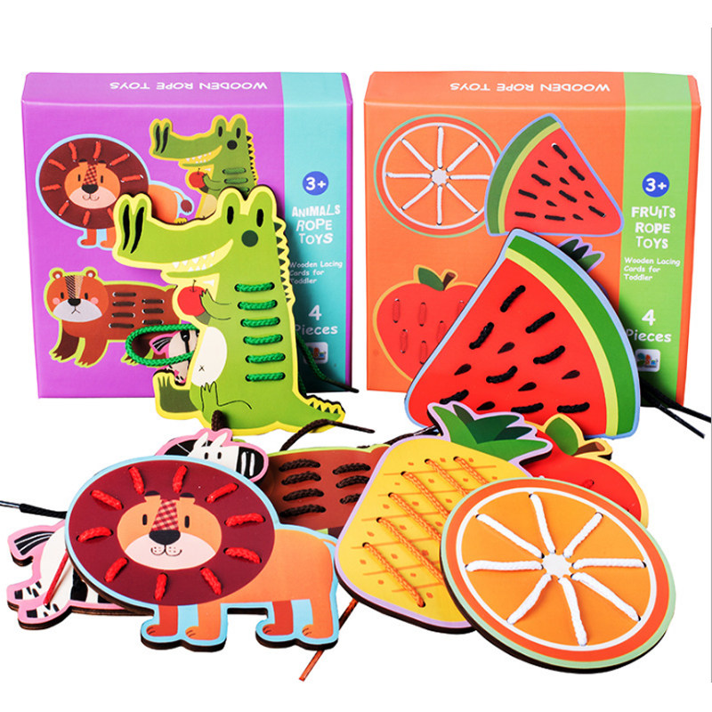 Fruit Animals Wear Line Plates Children Puzzle Early Education Wooden Tabletop Toy Game Kindergarten 61 Gift teaching aids