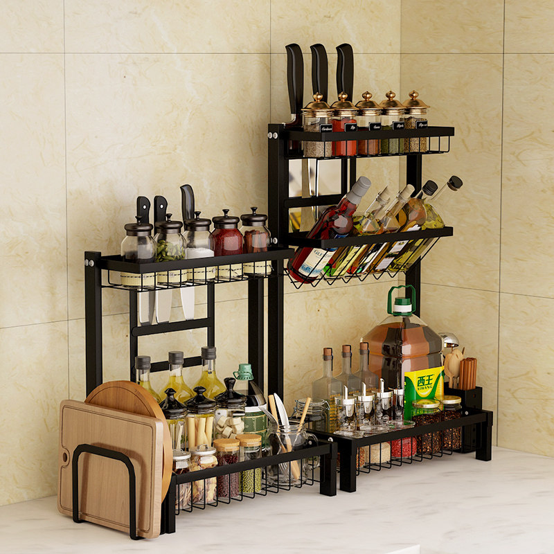 Kitchen Shelve Stainless Steel Black Floor Multilayer Chopstick Cage Tool Holder Chopping home Condiment Seasoning Intake shelf