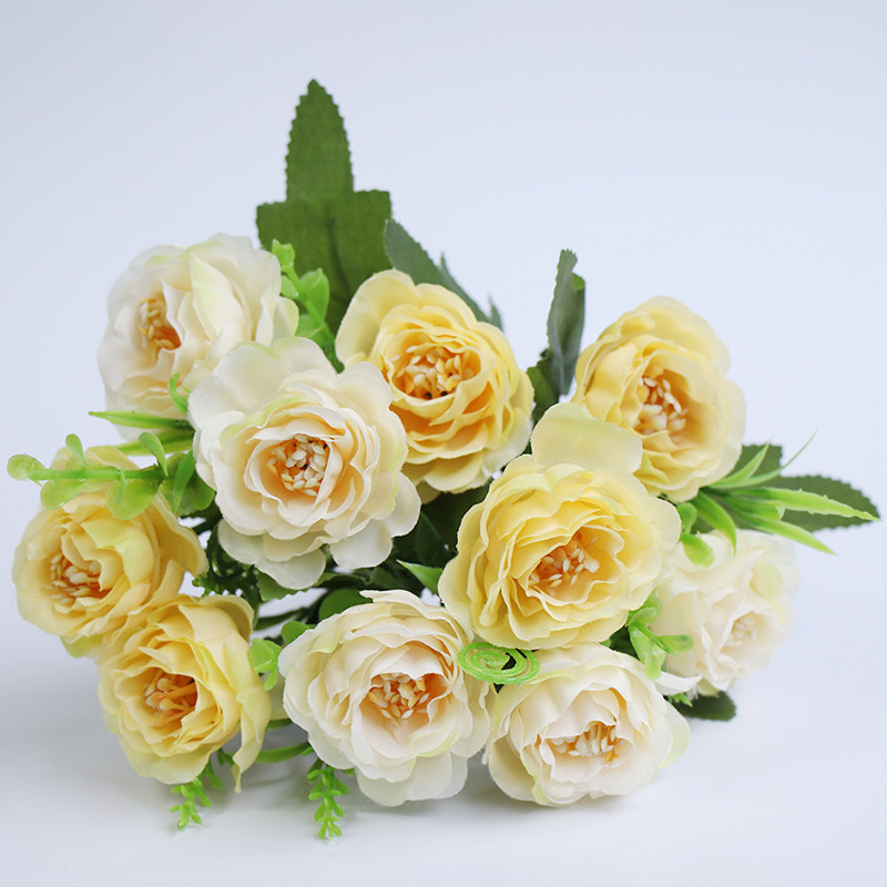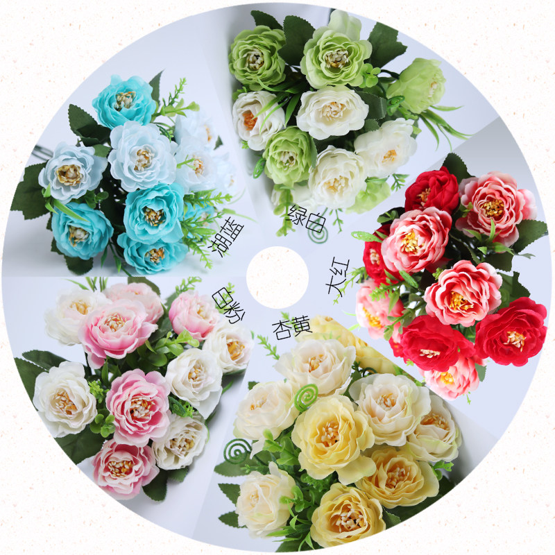 Pastoral small tea rose mini rose flower fabric bouquet jersey cloth simulation fake flower European style small fresh camellia bouquet