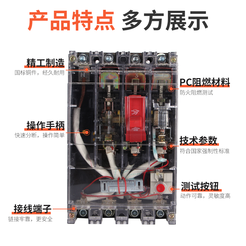 DZ20LE-160A 225A 250A 400A 400A 630A with earth leakage plastic shell breaker three-phase four-wire switch-Taobao