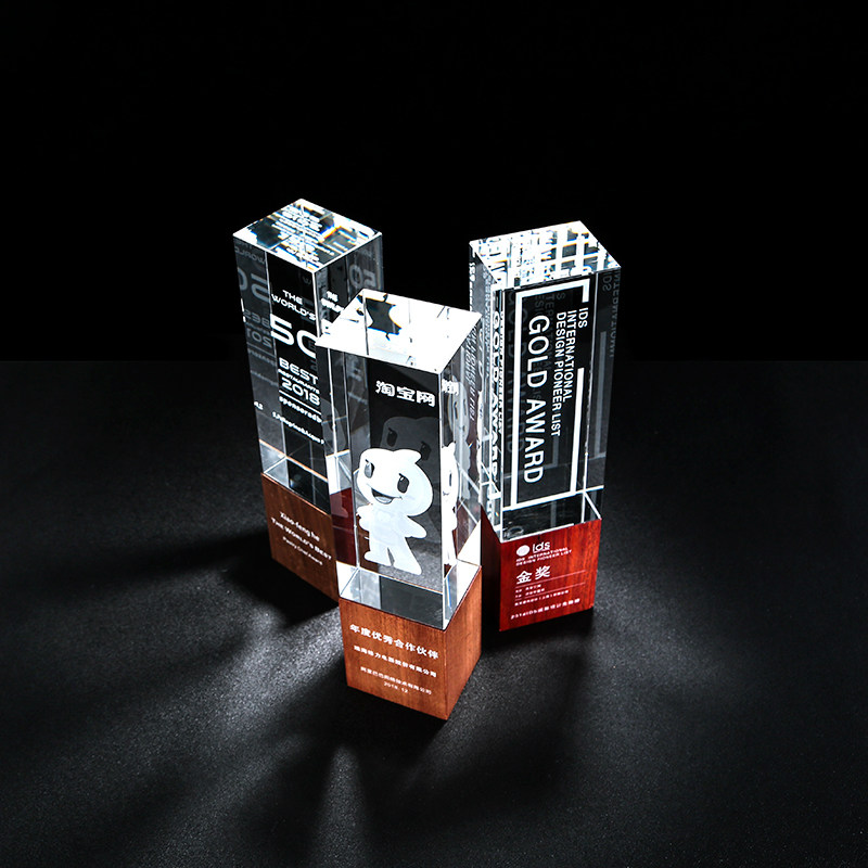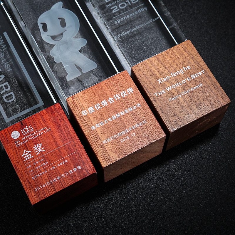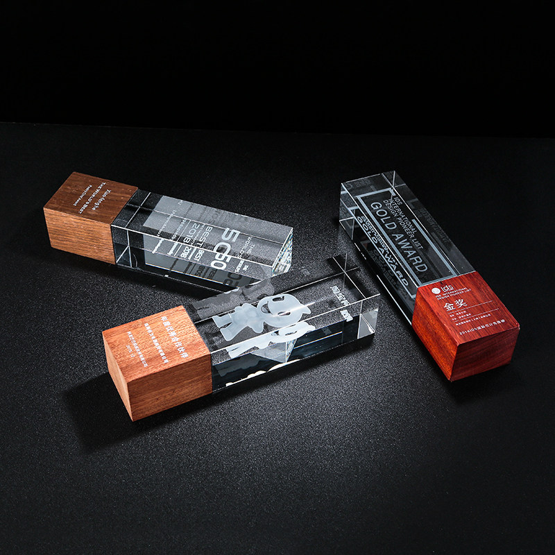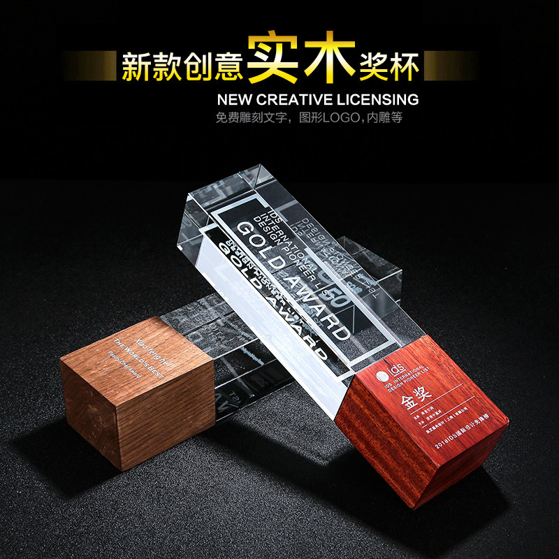 High-grade solid wood trophy customization Award honor crystal trophy lettering carved inside excellent staff custom-made creativity