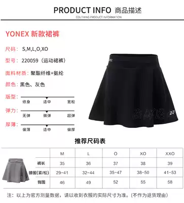 Official website YONEX Yix yy badminton skirt 220059 sports culottes bottoming breathable quick-drying