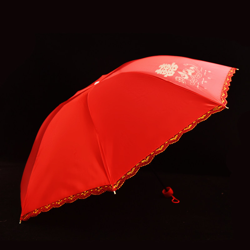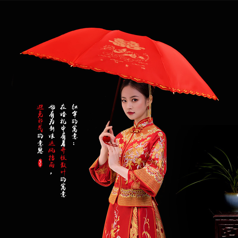 Wedding red umbrella wedding red umbrella bridal umbrella out of the wedding lace long handle retro high-grade folding sunscreen umbrella