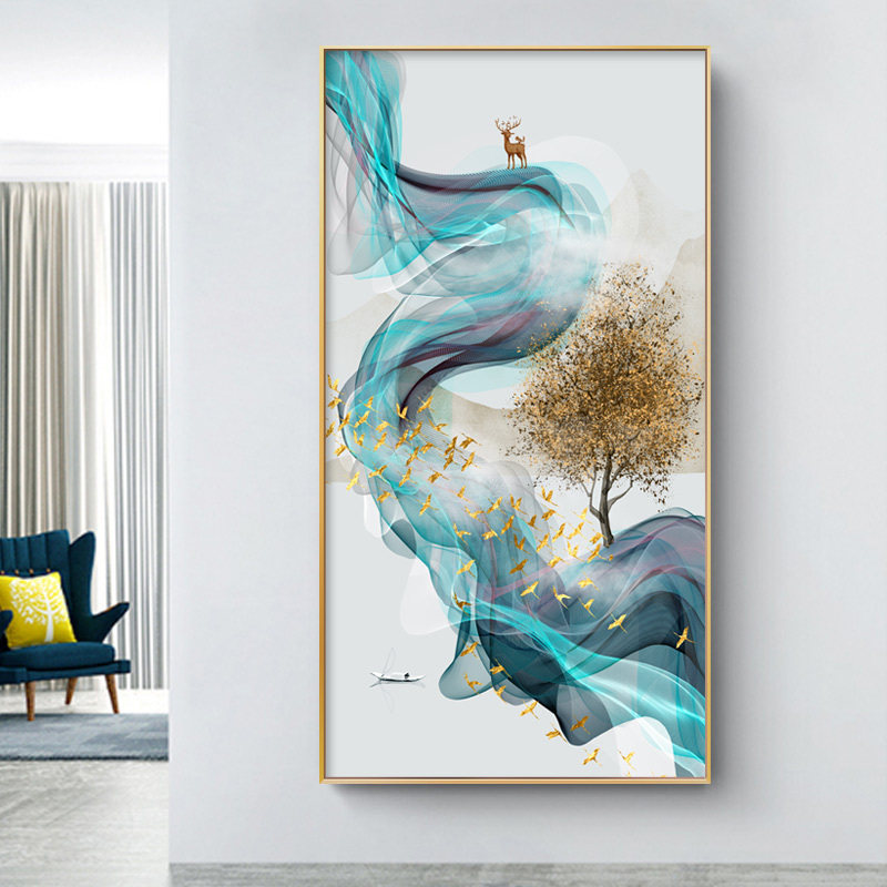 Living room entrance mural crystal porcelain painting diamond porch decorative painting vertical version simple modern aisle corridor entrance door hanging painting