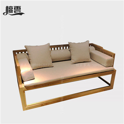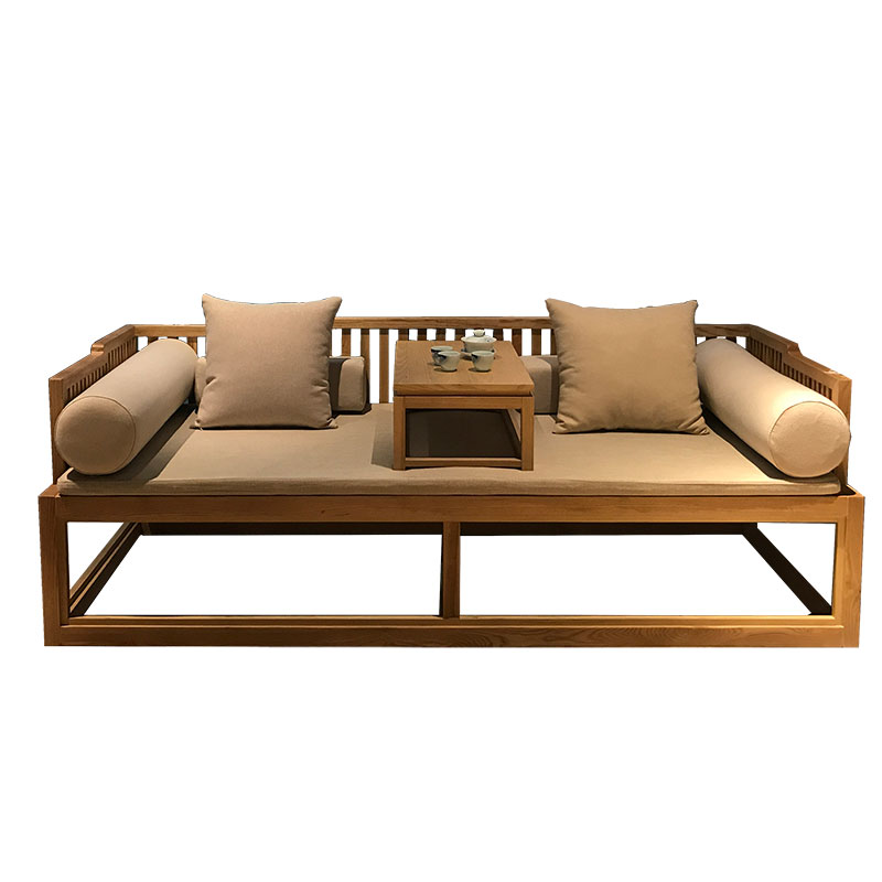New Chinese style antique solid wood sofa hotel club Arhat bed Arhat couch white ash wood double sofa bed furniture