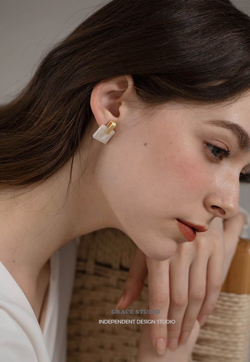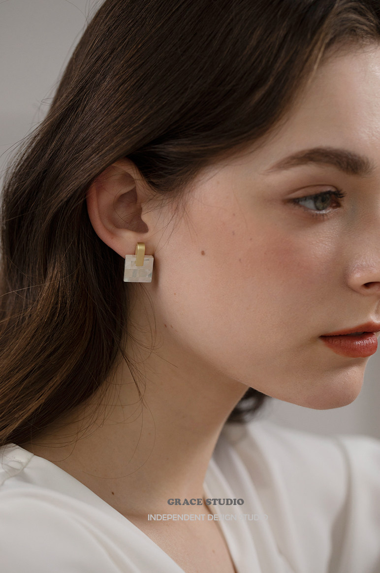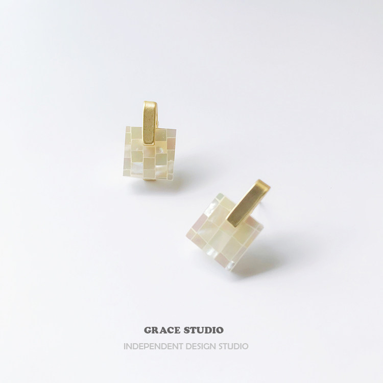 G S shell memory natural shell earrings female geometric mother-of-pearl mosaic designer earrings without pierced ear clips