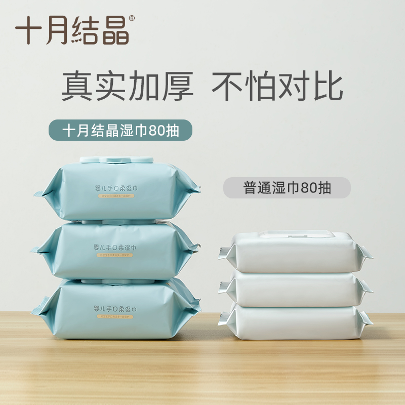 October crystalline baby wipes newborn hand mouth special wipes baby with cover wet wipes 80 pumps * 10 packaging