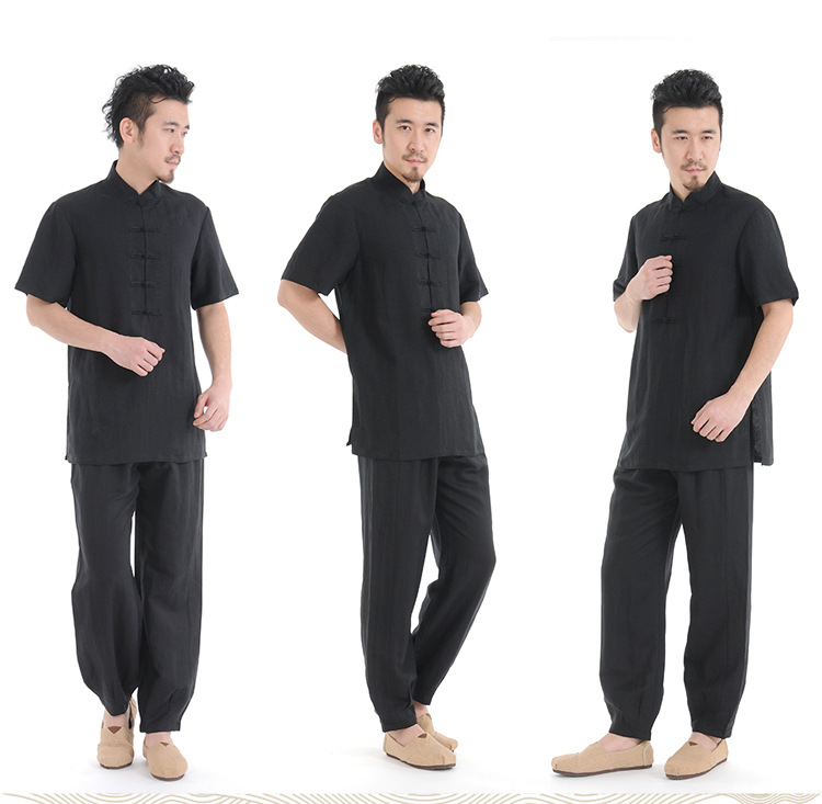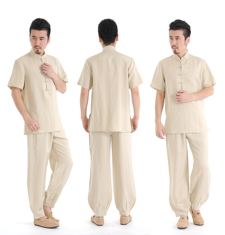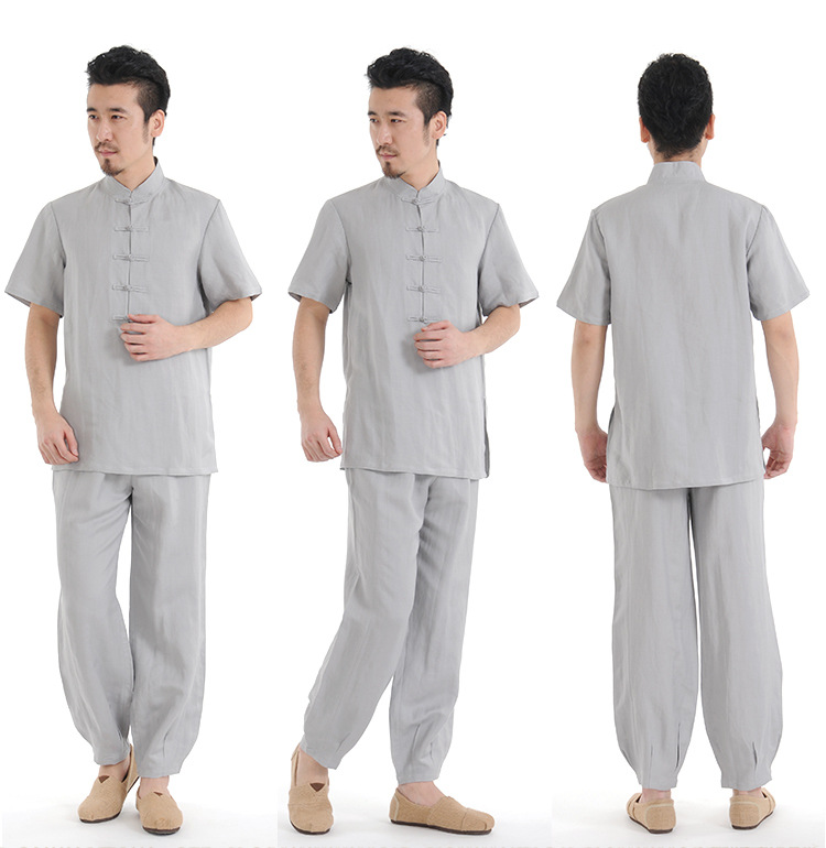 Summer new linen men's yoga suit suit Chinese style short-sleeved cotton and hemp Zen meditation suit Lay suit Han suit