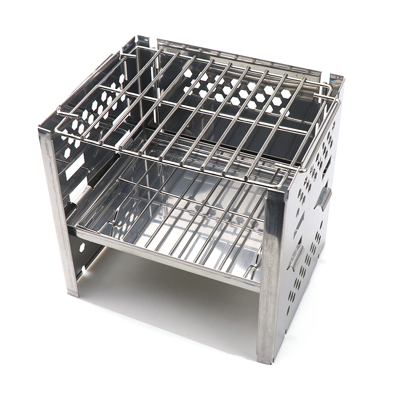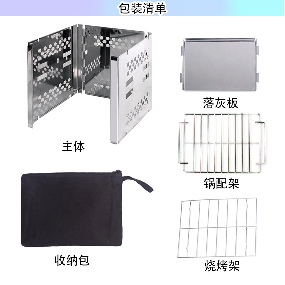 Outdoor wood stove Mini square barbecue stove Portable wood stove Stainless steel folding barbecue grill BBQ mini stove
