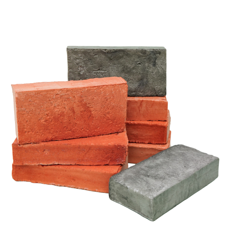 1 block of grey brick head five blocks of grey brick head 1 block red brick head 5 pieces red brick head 10 pieces red brick head 10 pieces of grey brick-and-mortar