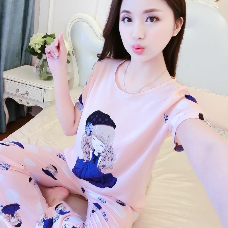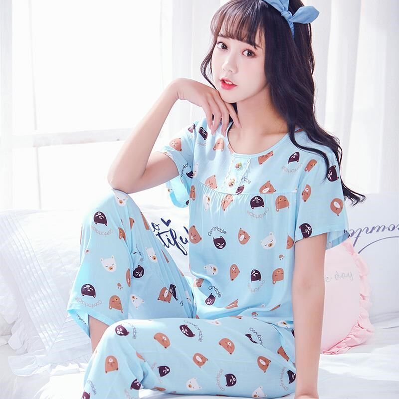 Charred Red Female Summer Breastfeeding Fresh Spring Summer Cotton Cloth Pajamas Trendy Outside Wearing Spicy Mother Asbestos Soft Girl Autumn Summer