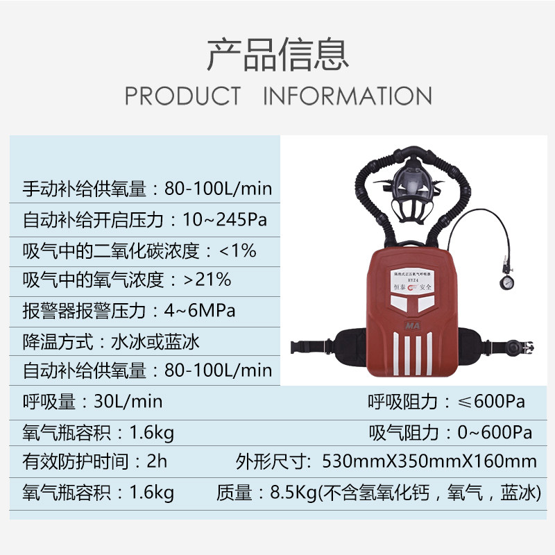 Hengtai isolated type positive pressure oxygen Suction Machine Tunnel Coal Mine HYZ-4 Hour Fire Rescuer Coal Safety certification