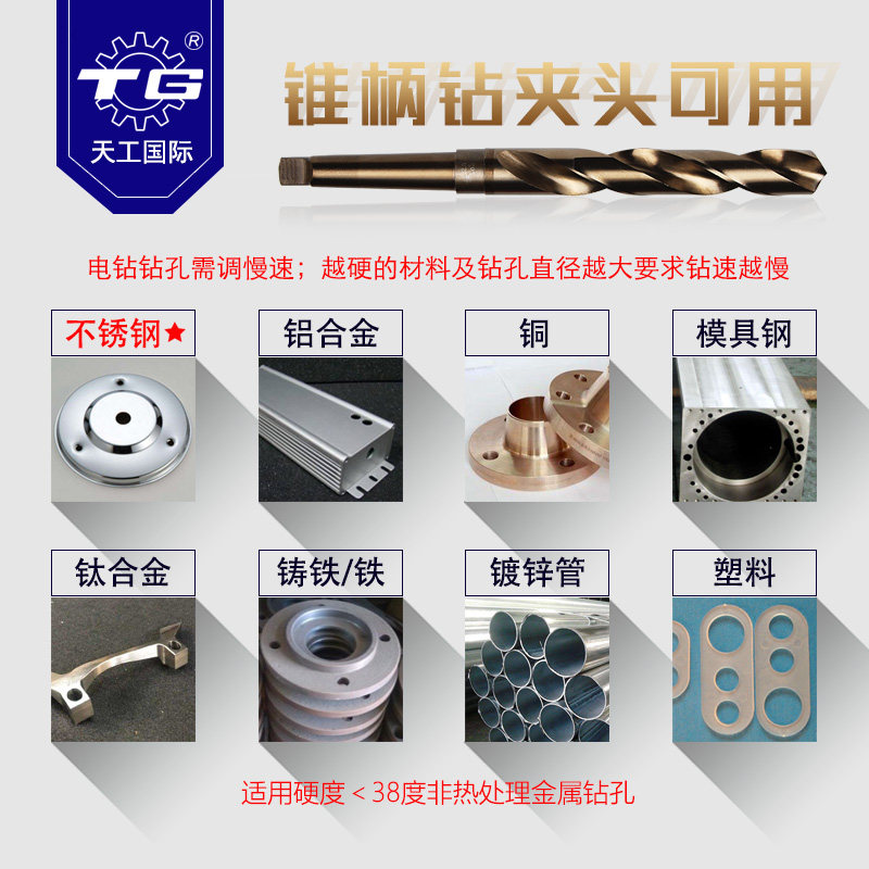 Tiangong drill bit Mohs cone handle twist drill stainless steel special cobalt containing super hard drilling high-speed steel drilling 20 punches