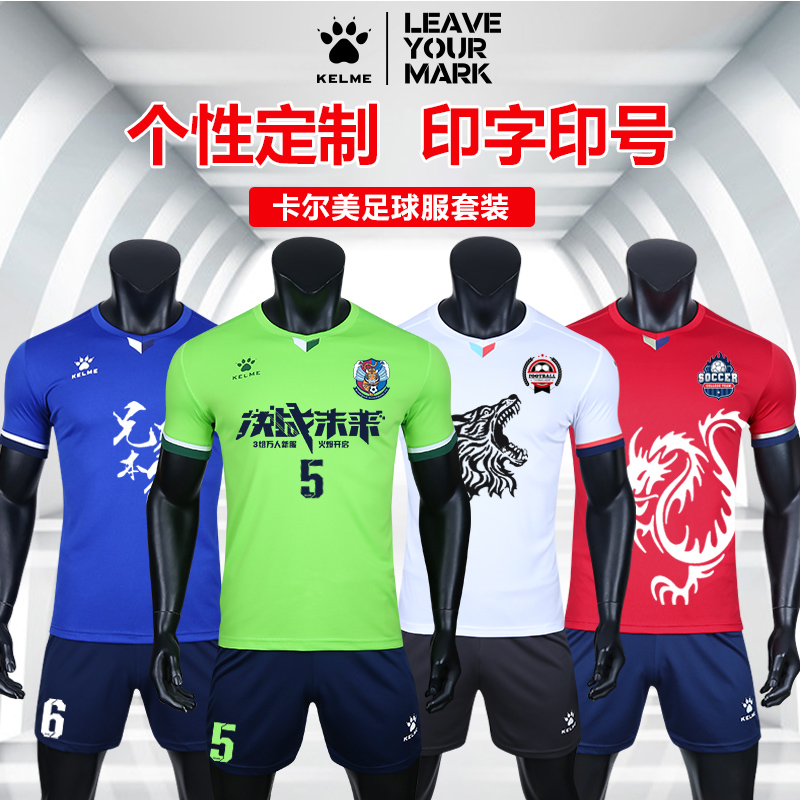 kelme football suit set male adult team short-sleeved quick-drying custom printed jersey red blue white