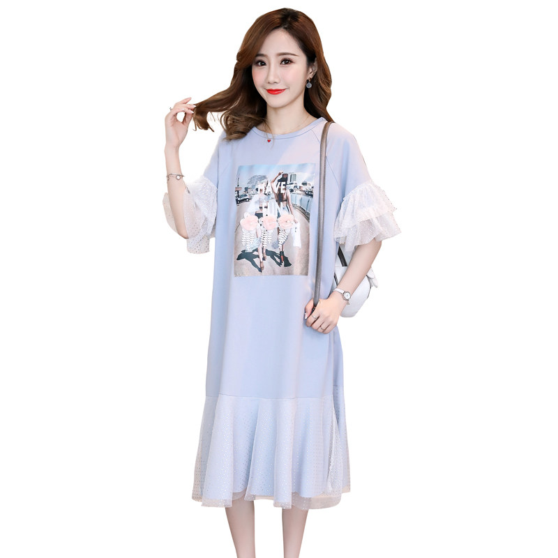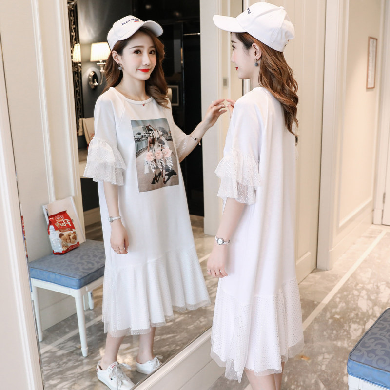 Maternity dress 2021 summer new T-shirt mesh short sleeve medium and long version fishtail skirt Maternity summer skirt