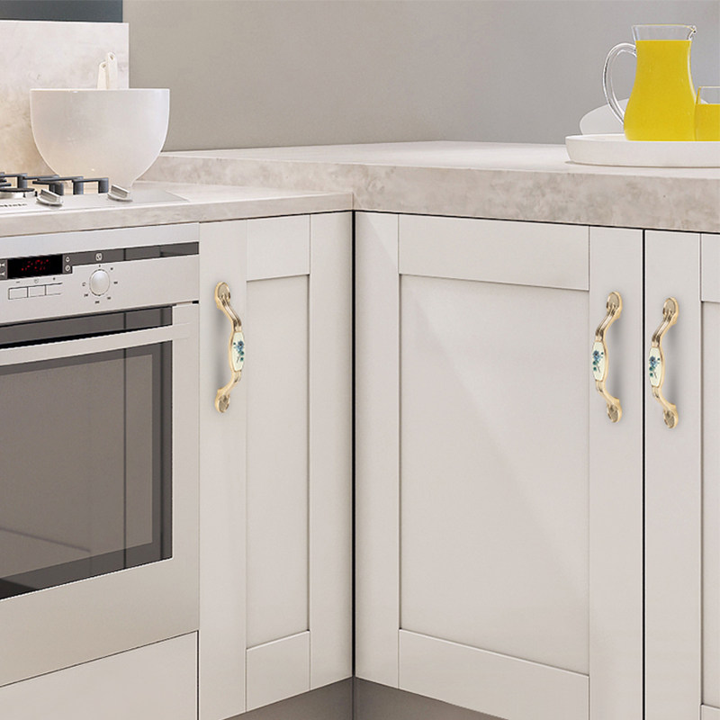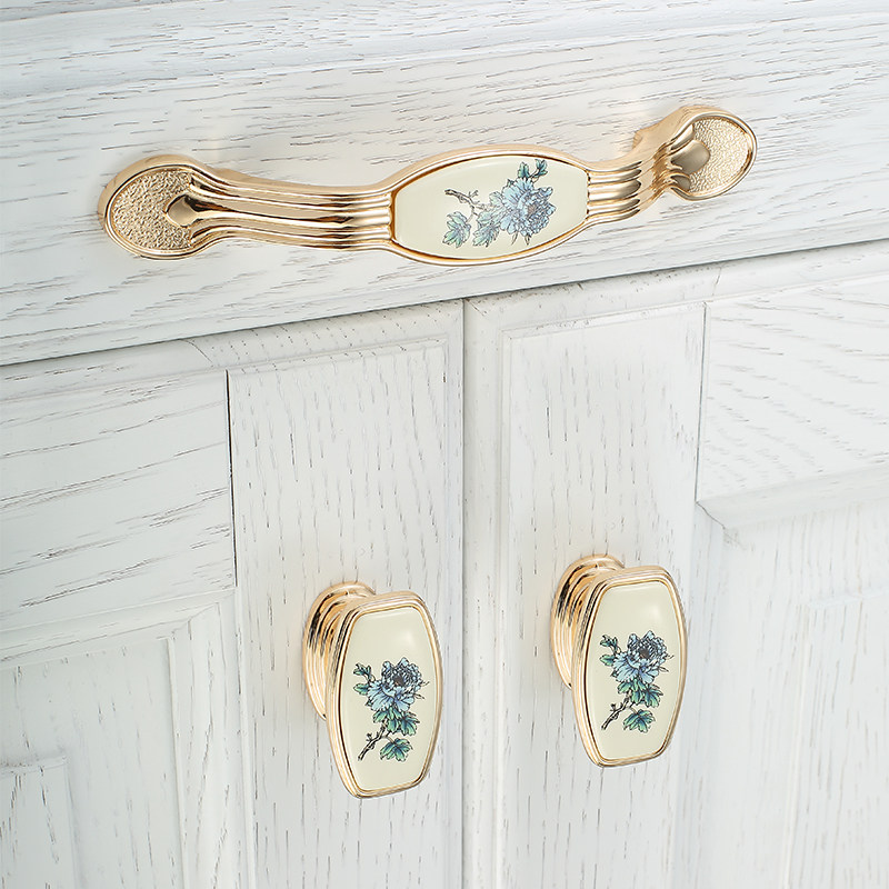 Overall cabinet ceramic handle European golden kitchen wardrobe door handle drawer handle cabinet door single hole furniture hardware