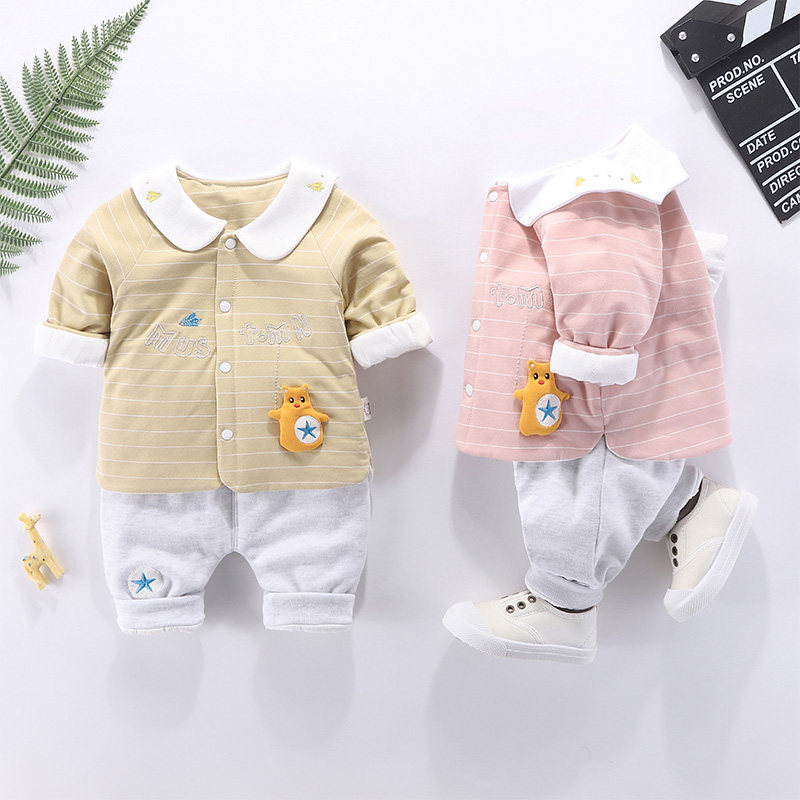 Baby spring, autumn and winter girls and boys wear thin cotton-padded clothes for children toddler coat children's suit two-piece baby clothes