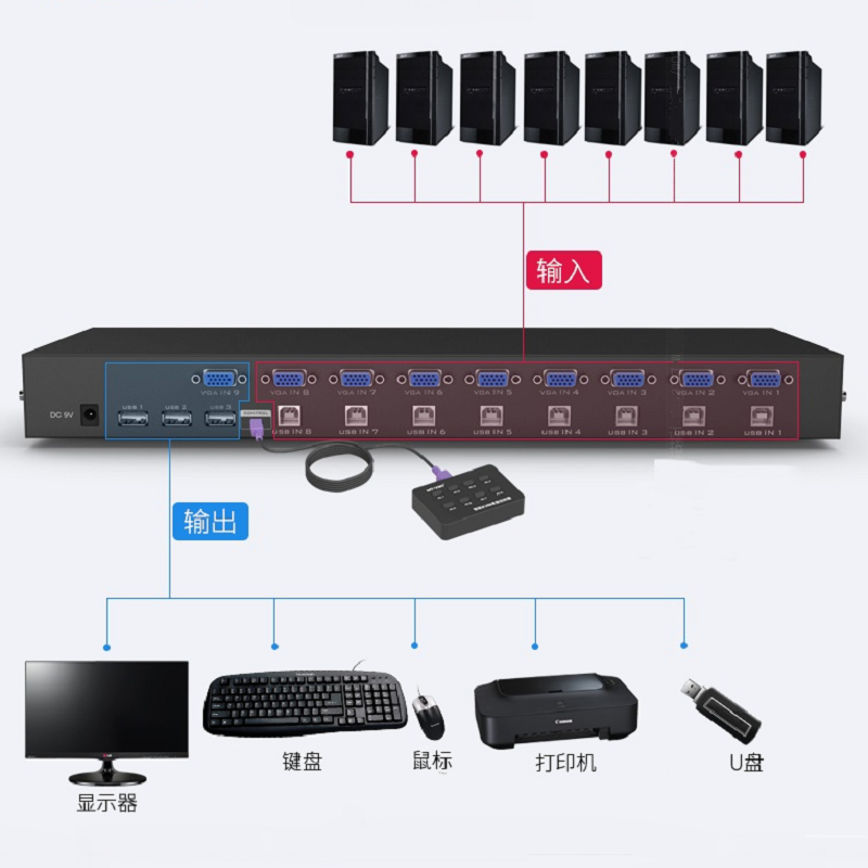 Maxtor Torque KVM switch 8-port USB manual 8-in-1-out VGA switch 8-port common mouse keyboard display MT-801UK
