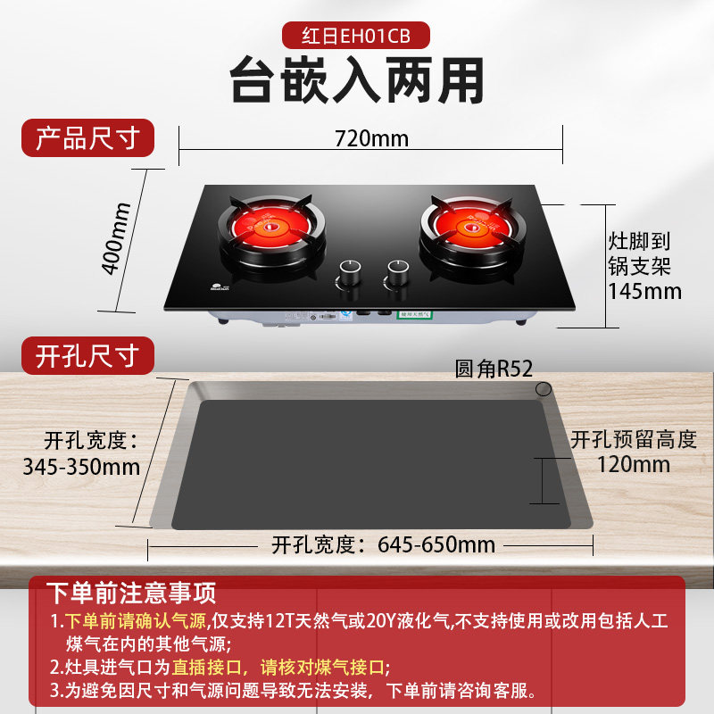 Red Day EH01CB infrared gas stove with embedded liquefied gas stove son gas double mouth gas stove table household
