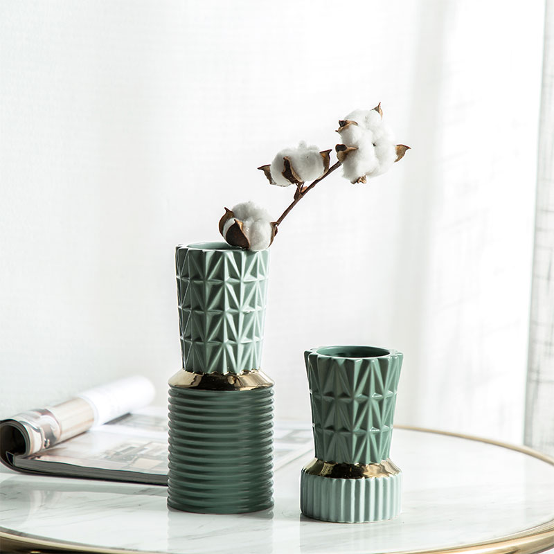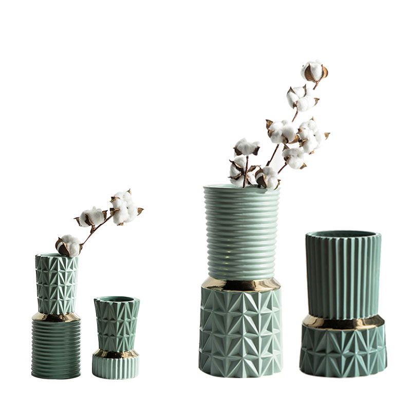 Modern Creative Ceramic Vase Pendulum Pieces Golden Geometric Living Room Flower Arrangement Drying Floral Briefs Nordic Home Decorative Goods