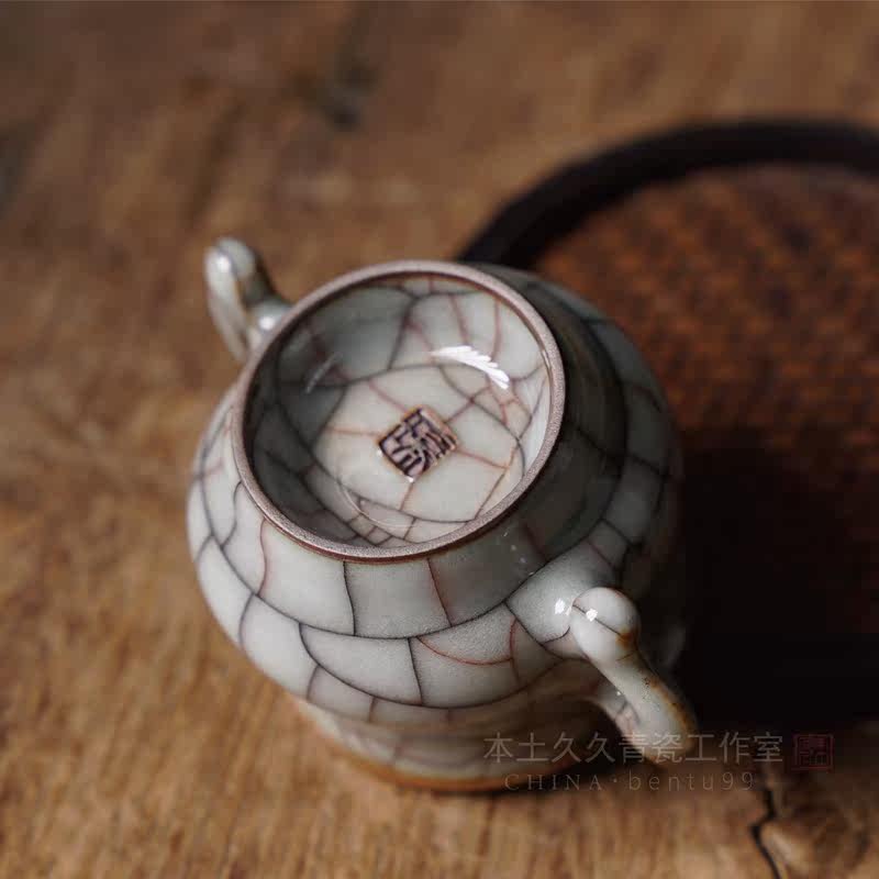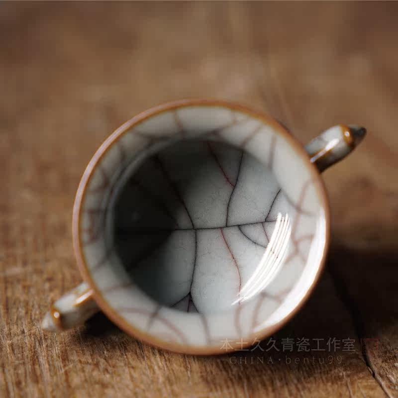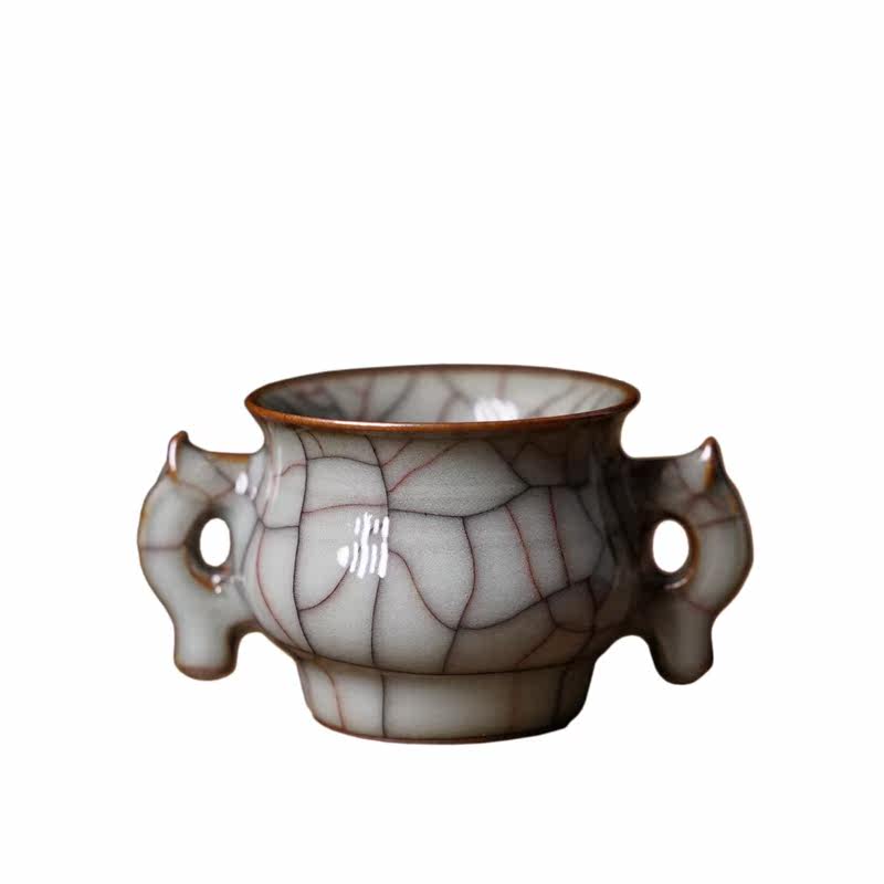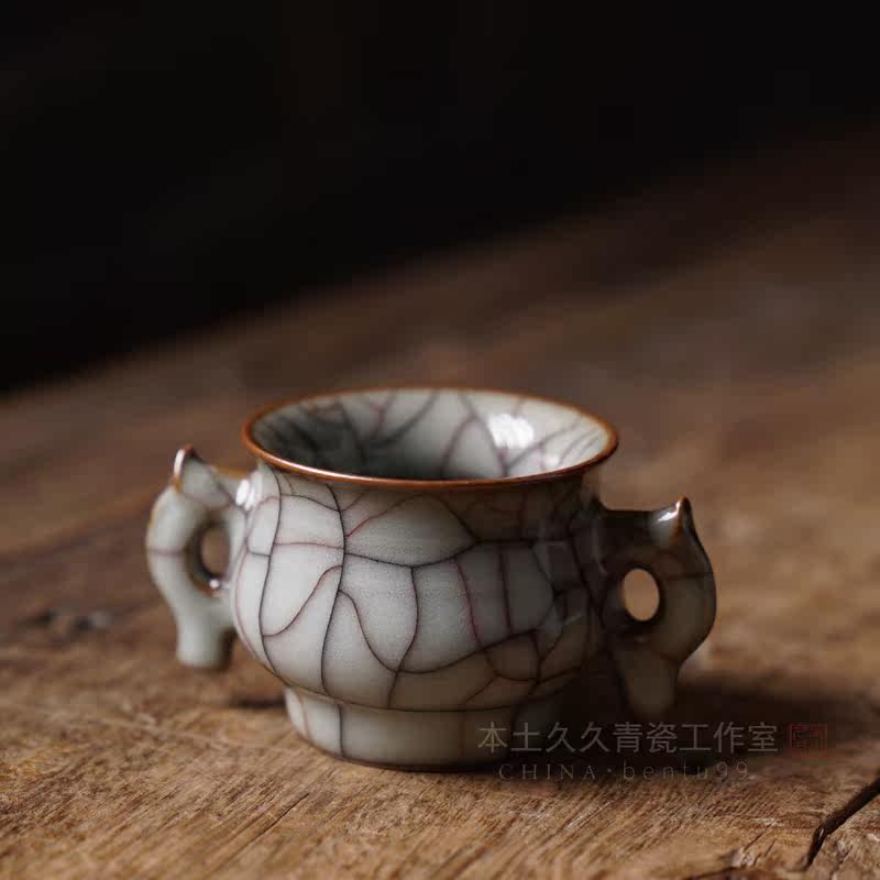 Jinyirui handmade double ear furnace Longquan Celadon Ge Kiln Tea Ceremony High-end line incense burner Buddha Hall supplies Small incense burner