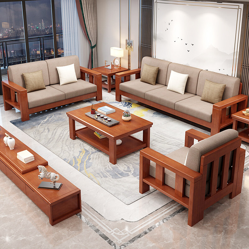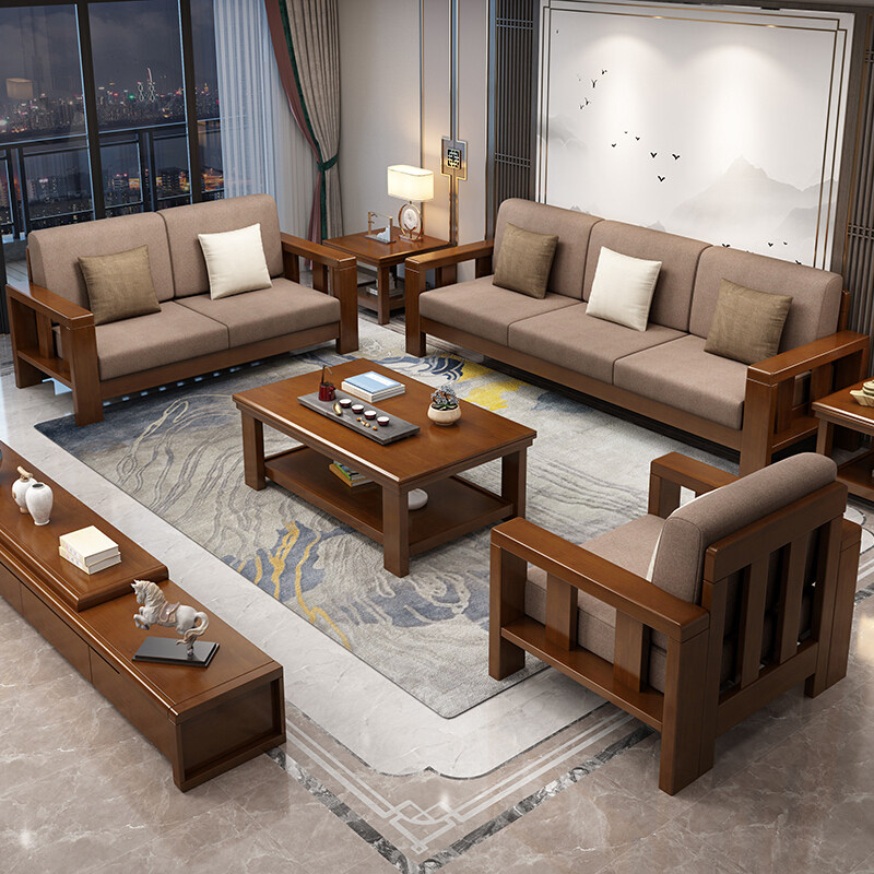 Nordic solid wood sofa living room furniture modern Chinese solid wood small family economic wood sofa 1 2 3 combination