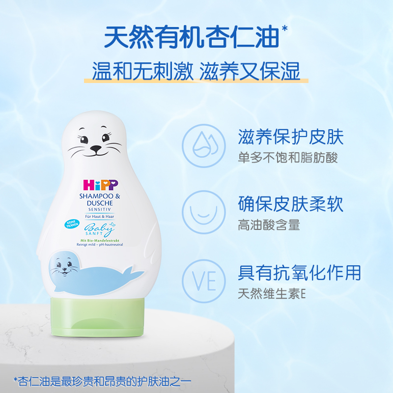 HiPP Xibao little sea lion infant baby no tears hypoallergenic children's shampoo and shower milk for newborns