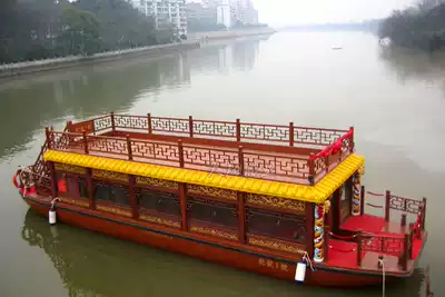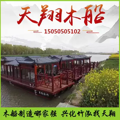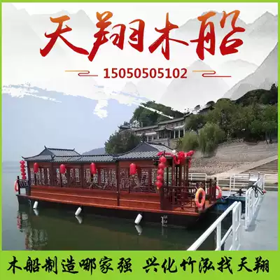 Wooden boat Double-decker painting boat Water large dining boat Park electric cruise ship Tourism and sightseeing antique boat
