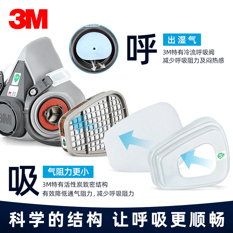 3M Anti-gas mask 6200 Painting special anti-chemical gas Industrial dust nasal Tan protective face mask Suction Face Shield