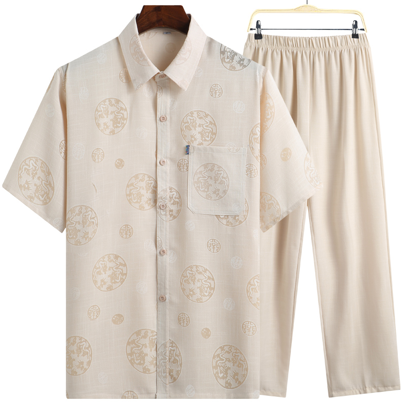 Round Dragon Son Short Sleeve Suit Grey Round Dragon With Short Sleeve Suit Beige Ruyi With Short Sleeve Suit Beige Ruyi With Short Sleeve Suit Grey Bamboo Leaves