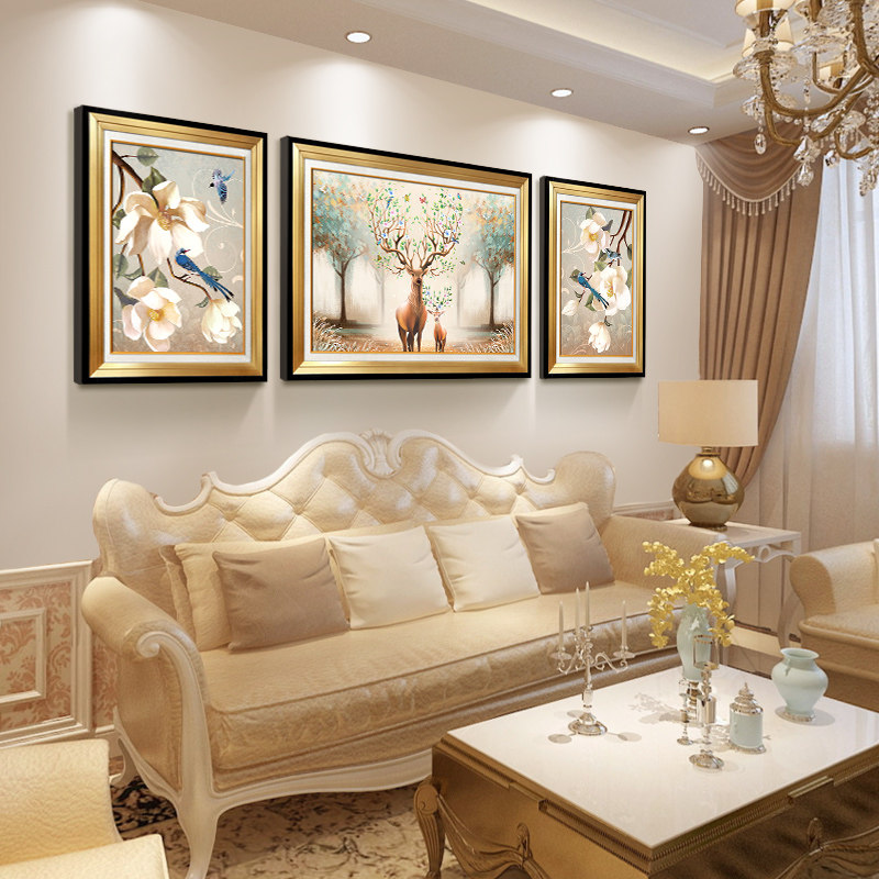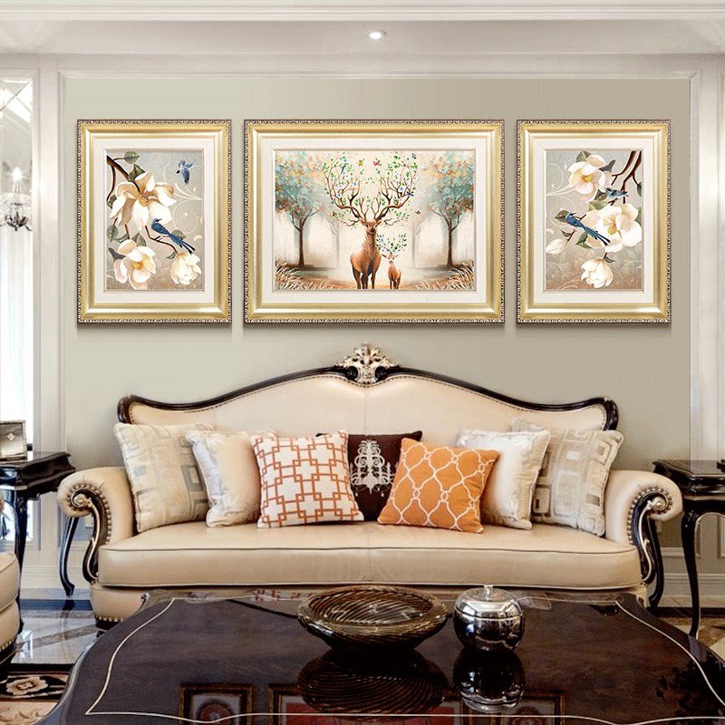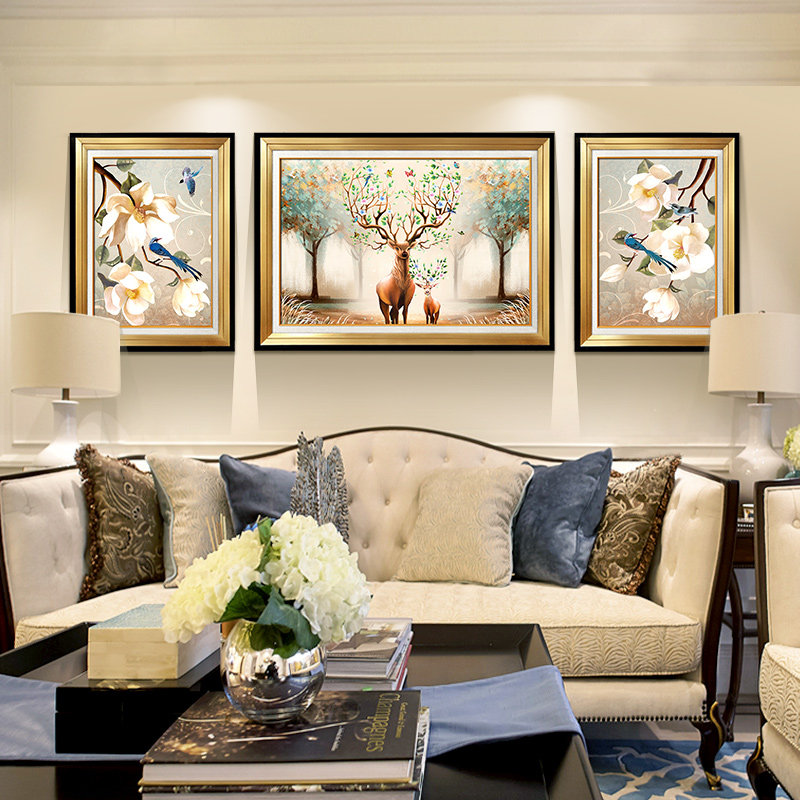 Eurostyle Living Room Decoration Painting Atmospheric Sofa Behind The Background Wall Mural Painting Triple Painting Light Extravaganza Painting Elk Wall Painting