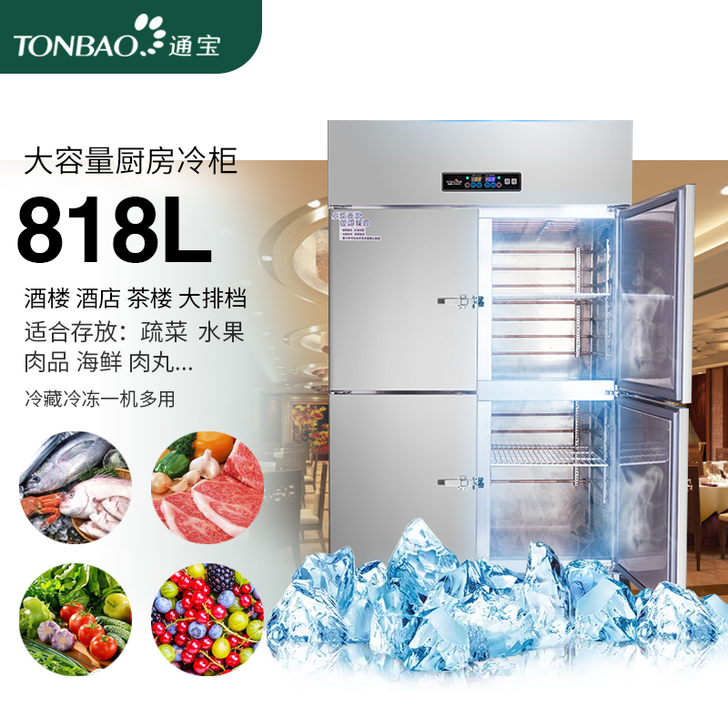 Tongbao Freezer Commercial Kitchen Cabinet Four Doors Refrigerated Frozen Twin Warm Large Capacity Stainless Steel Hotel Vertical Freezer