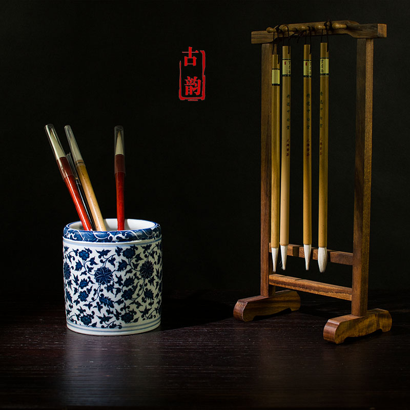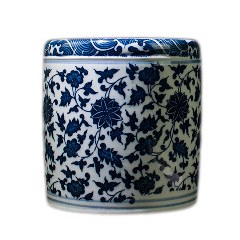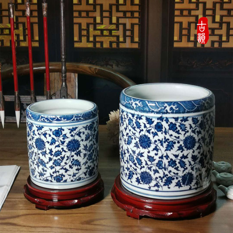 Jingdezhen ceramic antique blue and white porcelain pen holder large brush barrel Vintage Chinese style large capacity storage ornaments
