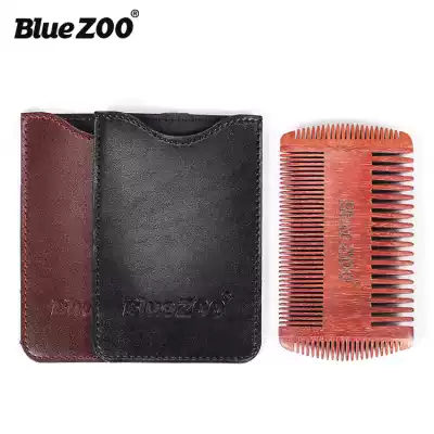 4-Sided Red Sandalwood Bluezoo Promotion Hair Beard Mustache Portable wooden comb Leather Bag Men's care Set