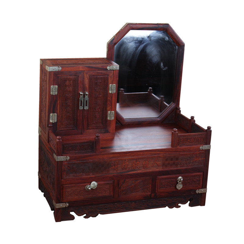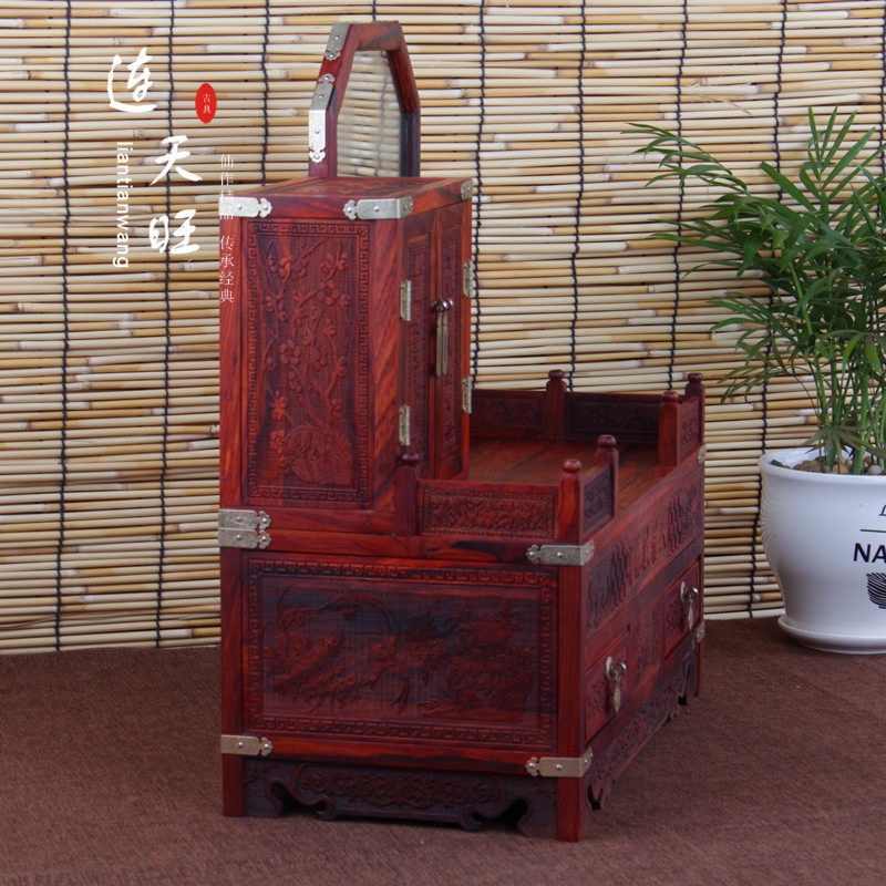 Red Acid Branches Makeup Boxes Red Wood First Accessories Box Solid Wood Retro With Mirror Woody Antique Multilayer Makeup Bench Wedding Gifts