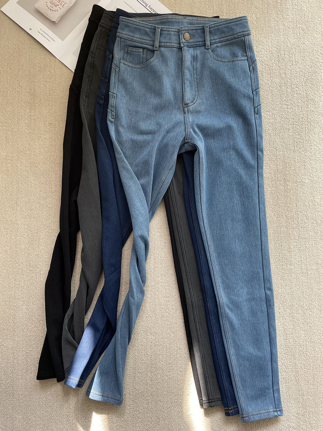 Pure black single pants spring and autumn dark blue single pants spring and autumn medium blue single pants spring and autumn dark blue plus velvet autumn and winter black plus velvet autumn and winter light blue plus velvet autumn and winter gray plus velvet autumn and winter light blue spring and autumn single pants