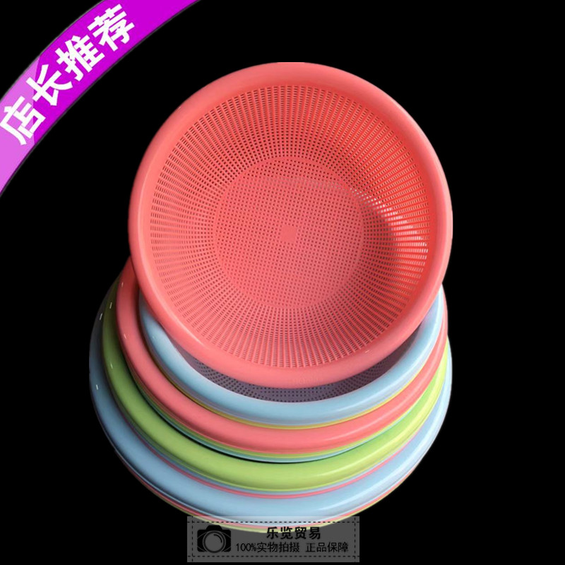 Thickened Round Colored Plastic Basket Wash Rice Naughty Special Round Griddle Hotel Kitchen Wash Vegetable Drain Basket Big