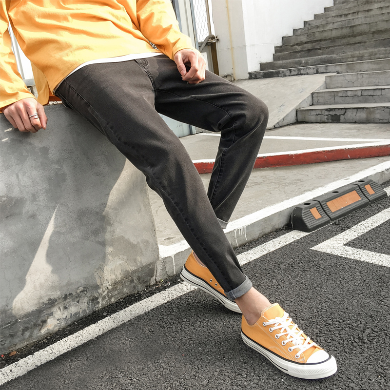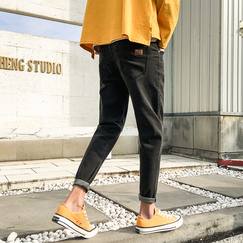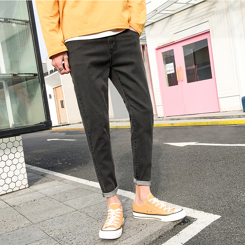 Grey Jeans Male Tide Card 90% Body Small Footed Korean version Trend Student Summer 100 lap tight for 9-minute pants