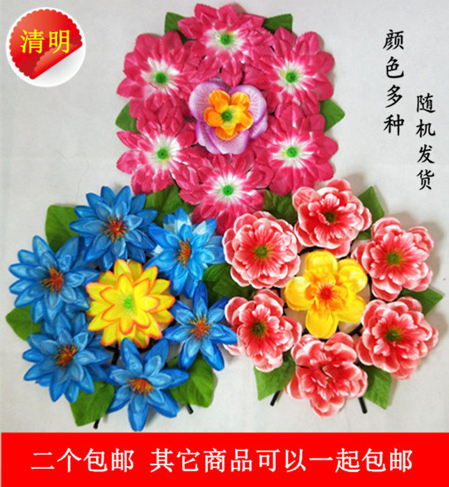 Burn paper sacrificial items sweep tombs Flowers Fake Flowers Wreaths of yellow paper Qingming to the grave of the tomb
