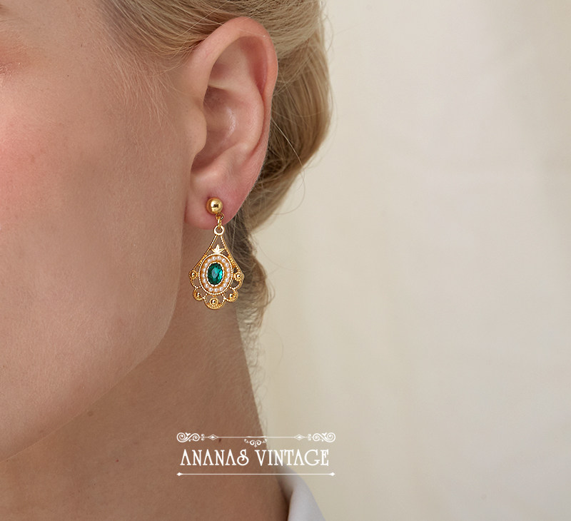 vintage overseas custom antique modern reengraving 100 hitch-proof pearl gold plated anti-allergy 925 ear clip