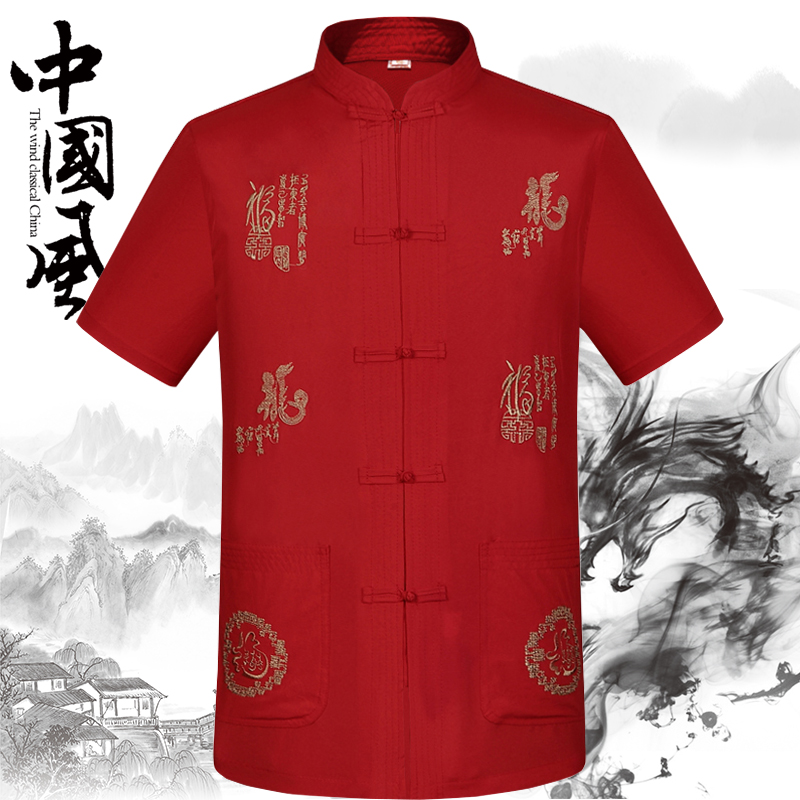 Chinese Wind Men Short Sleeve Tang Middle Senior Size Chinese Summer Daddy Half-sleeved Shirt Grandpa Clothing