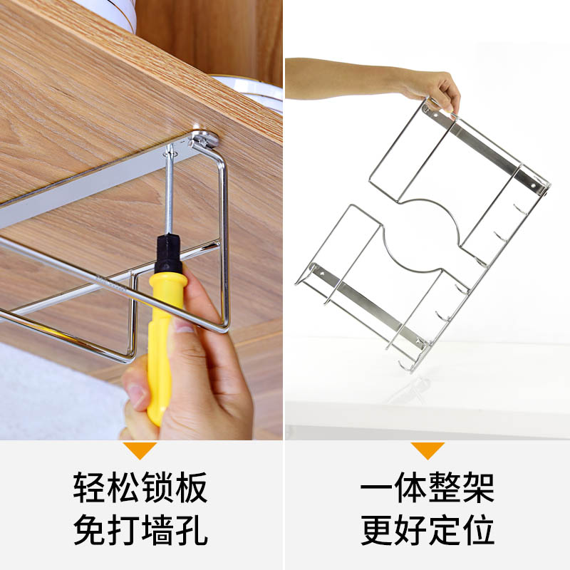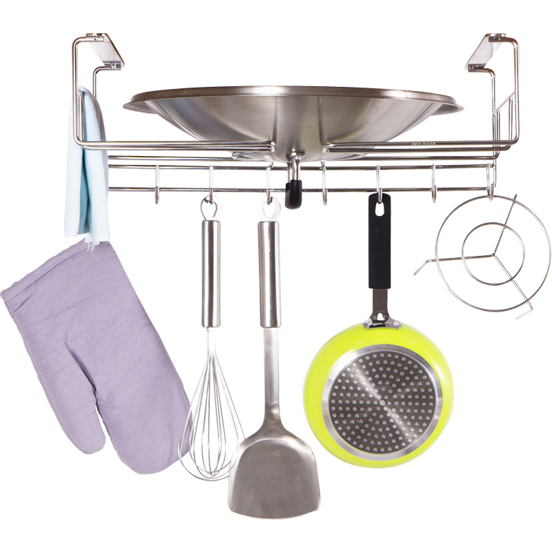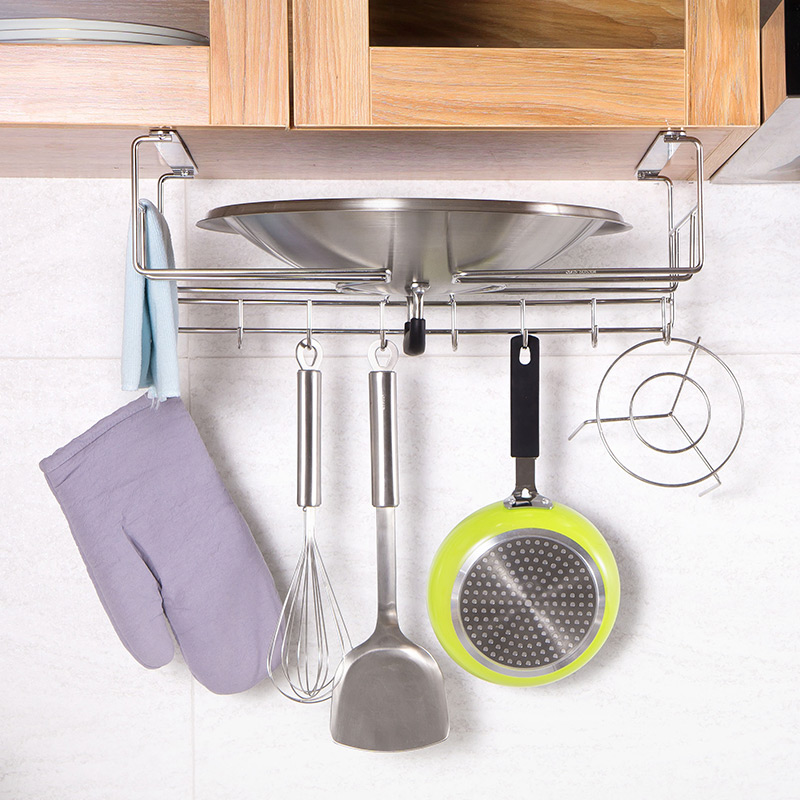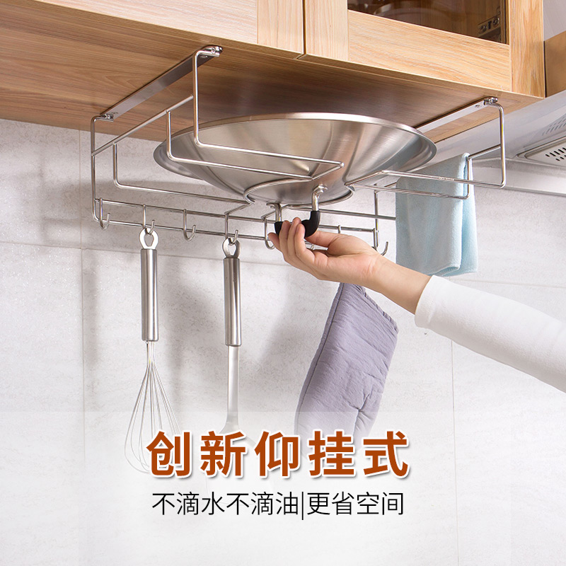 Kitchen wall-mounted large lid rack multifunction free of punch 304 stainless steel hooks Home shelve chopping frame
