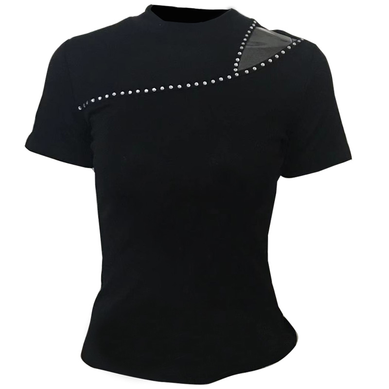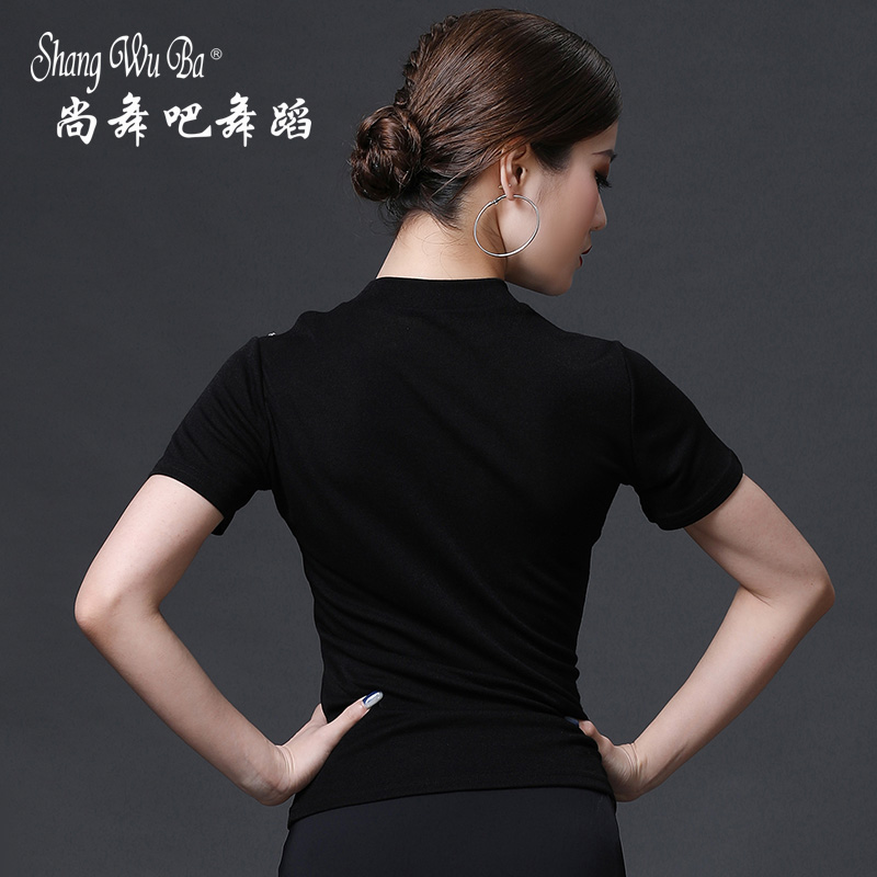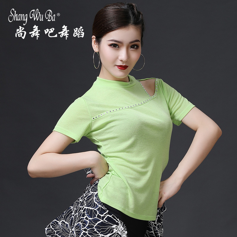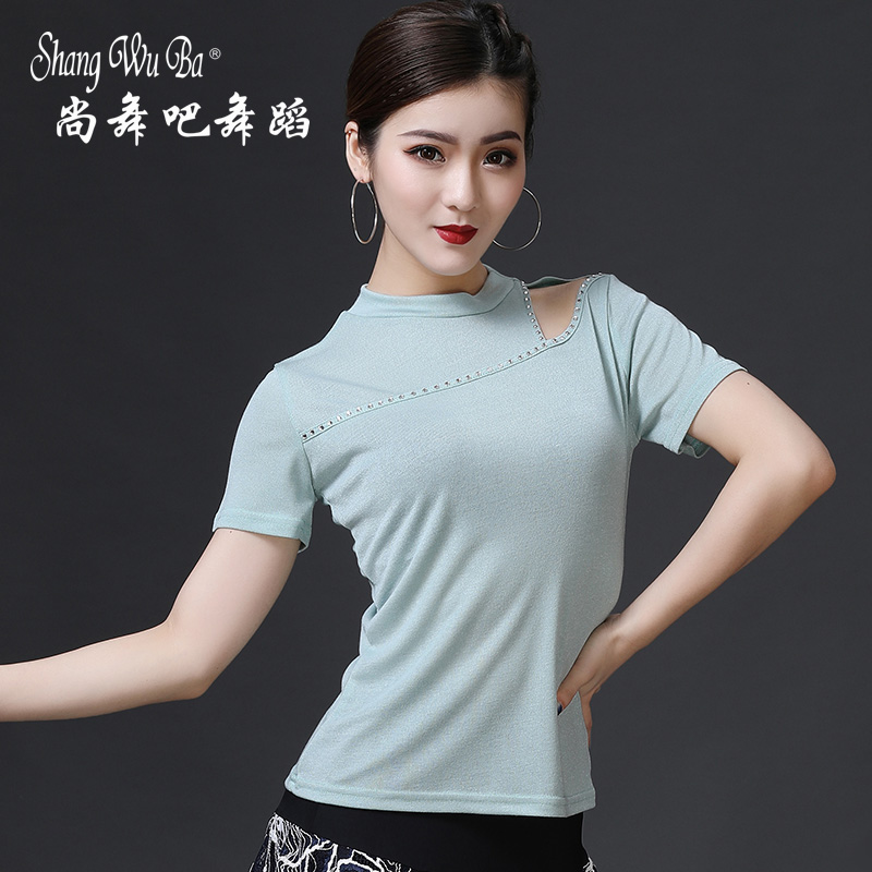 Champ dance bar New hollowed-out Latin dance blouses female bronzing and drilling national standard dance performance Dancing Performance Wear short sleeves