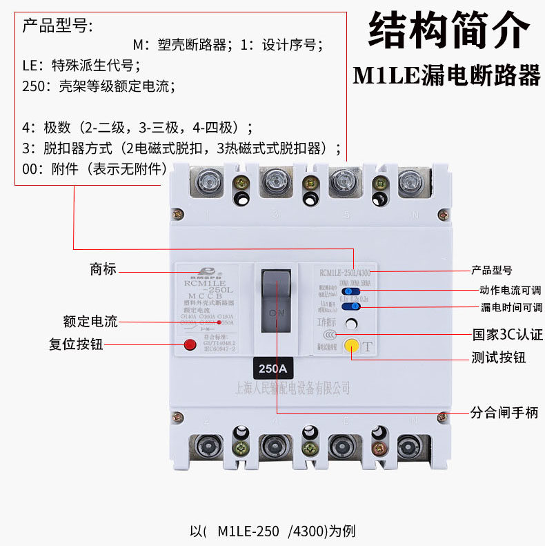 Shanghai People's earth leakage circuit breaker CM1LE-100A 250A 400A 630A 630A 4300 three-phase four-wire switch