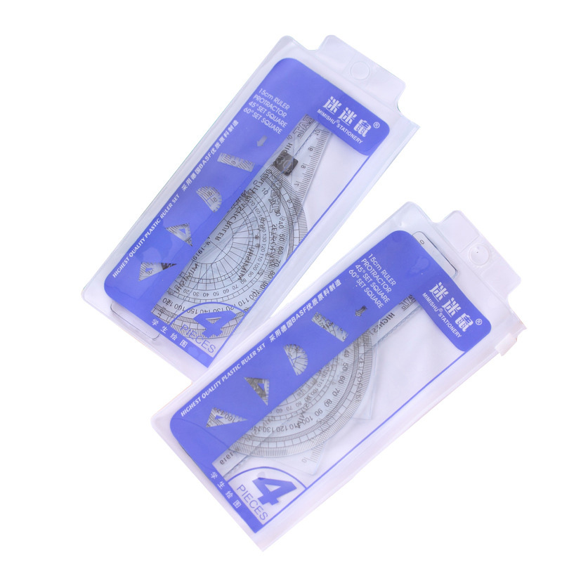 Simple style ruler set Student drawing ruler 4-piece set ruler Triangle protractor Multi-function stationery supplies