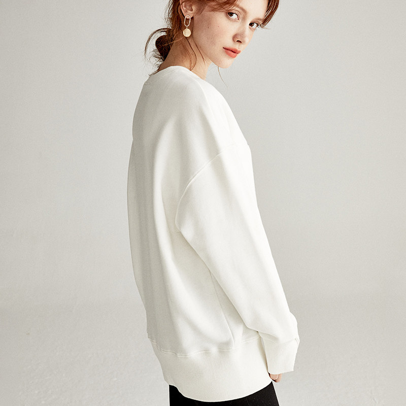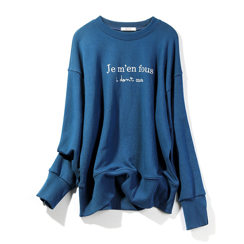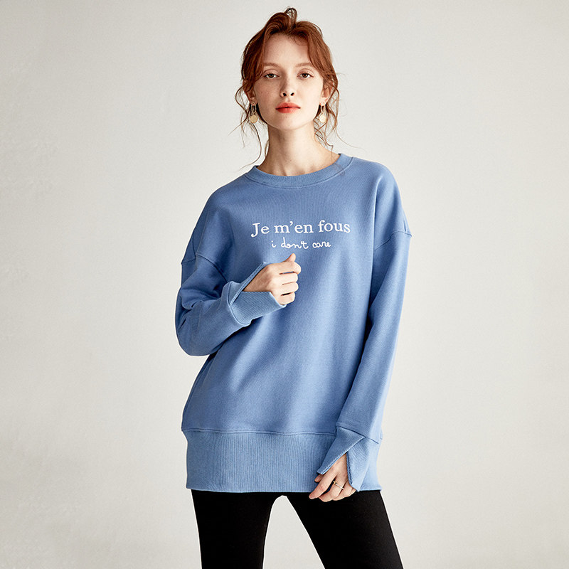 U home Western-style blue sweatshirt women 2022 autumn new Korean version loose plus fleece pull-over round neck fashion coat