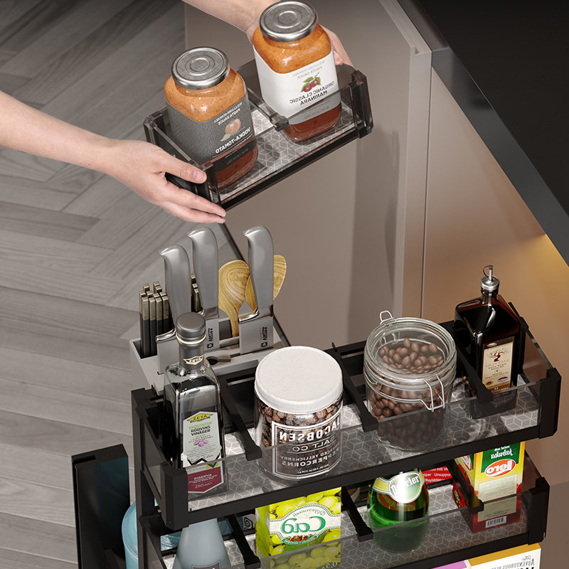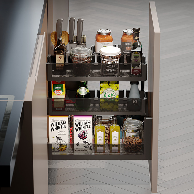 Seasonings Pull Basket Kitchen Overall Cabinet Glass Aluminum Alloy Drawer Multilayer Function Contained Cutlery Interior Shelf Blue
