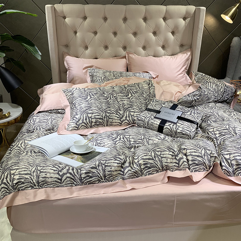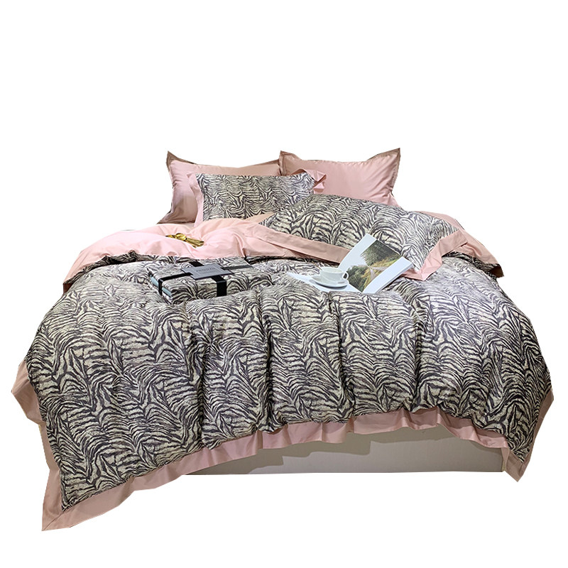 Full cotton long suede cotton four pieces of covered zebra BAO WELN Spring autumn personality gondole quilt cover pure cotton nude sleeping bed bedding-Taobao