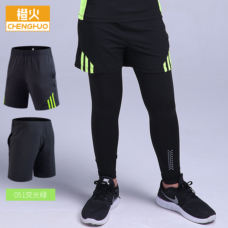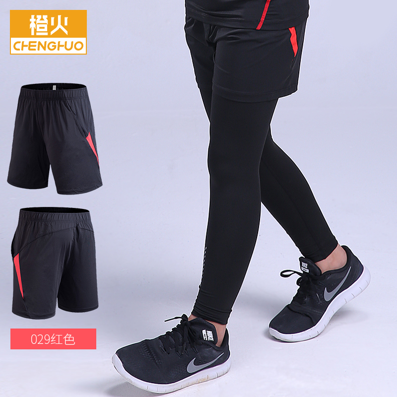 Orange Fire Children Training Shorts in Big Child Leisure Speed Fast Dry Sports Pants Running Fitness Summer